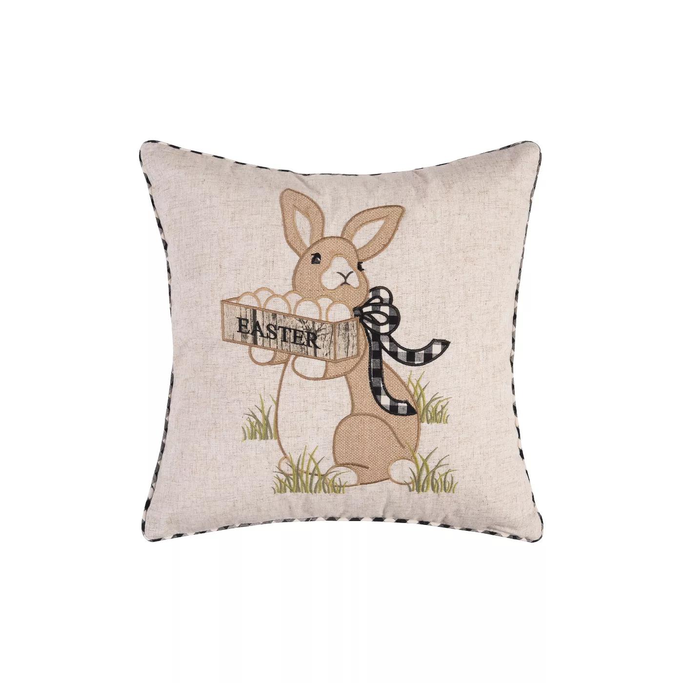 Bring a little comfort and style home. With a rustic Easter bunny and egg design, this embroidered decorative throw pillow is perfect to complete your Easter décor or your modern farmhouse look.
