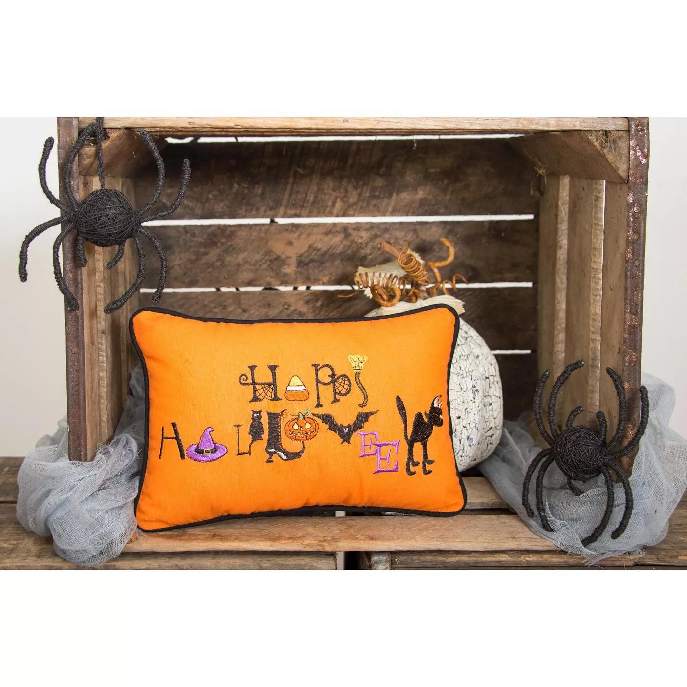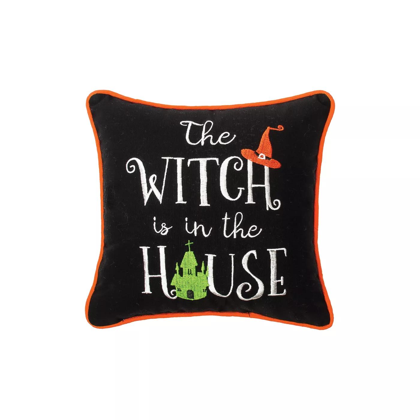 Let everyone know that the "Witch is in the House" this Halloween with this accent pillow. Embroidered with festive Halloween colored witch hats, displayed on a black background and finished with an orange piped trim this cotton pillow is sure to delight. Crafted with a cotton cover this 12-inch x 12-inch pillow is the perfect accessory for your Halloween decor.