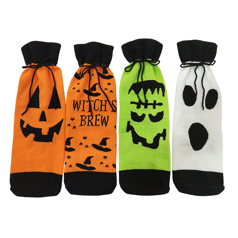 Our Halloween wine bottle cover generally has most of the styles of drawstring bags, and there are also three-dimensional styles, suit styles, and clothes styles designed with Halloween elements. They are all handmade and sewn, and the patterns in English can be embroidered, pasted, printed, etc.