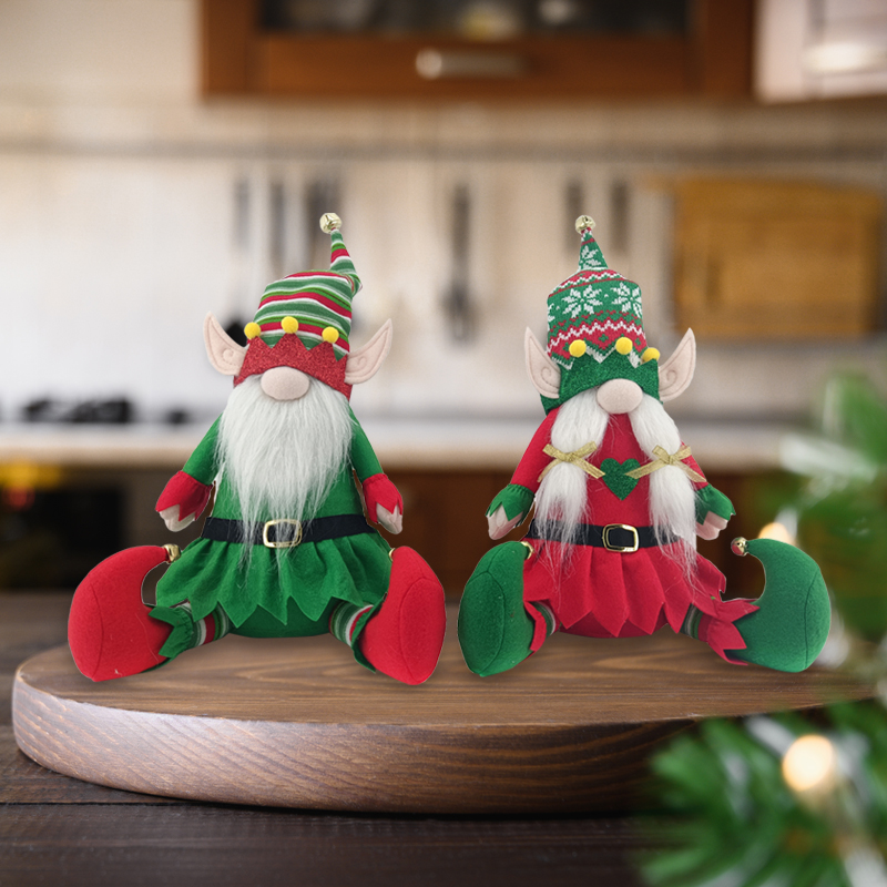 12inch Christmas R G Octagonal Elf Gnome Sitter 2 Asst