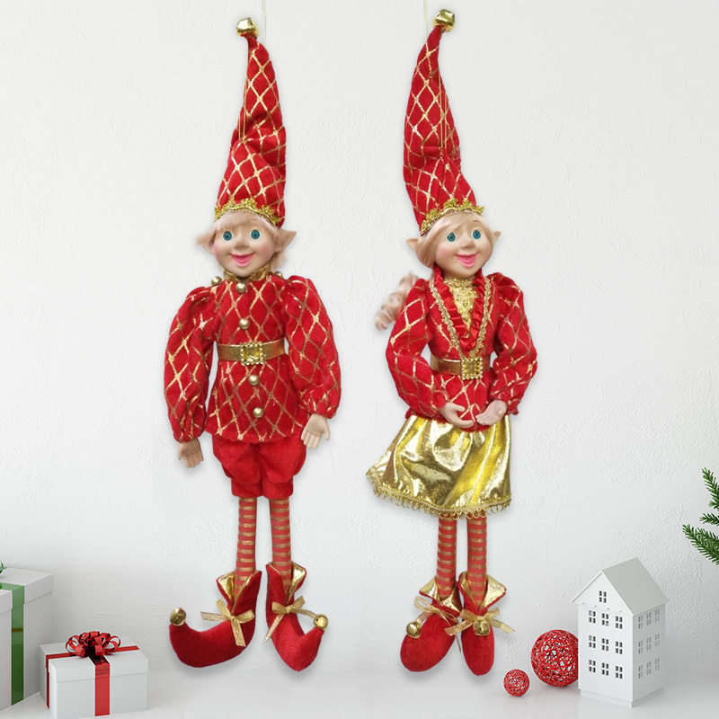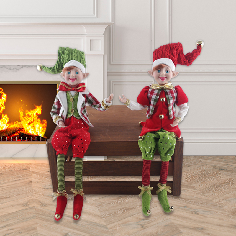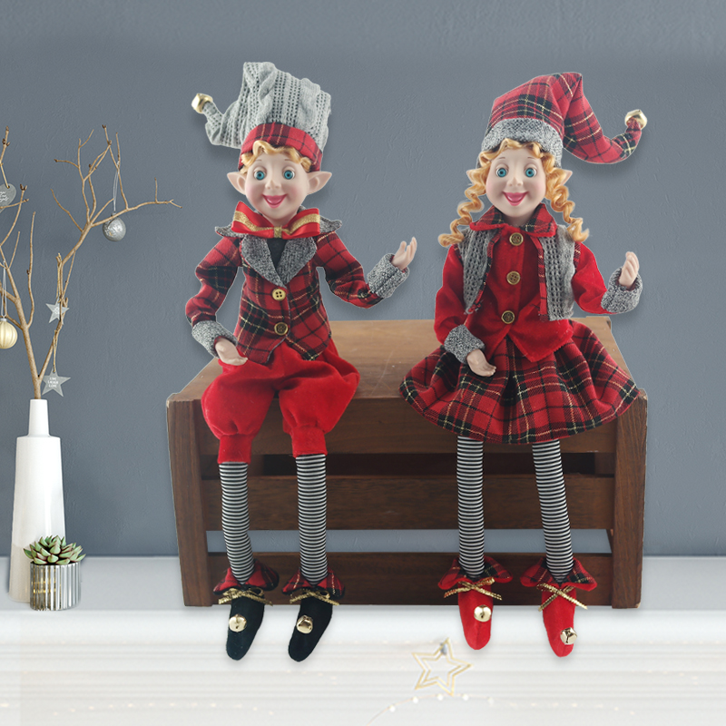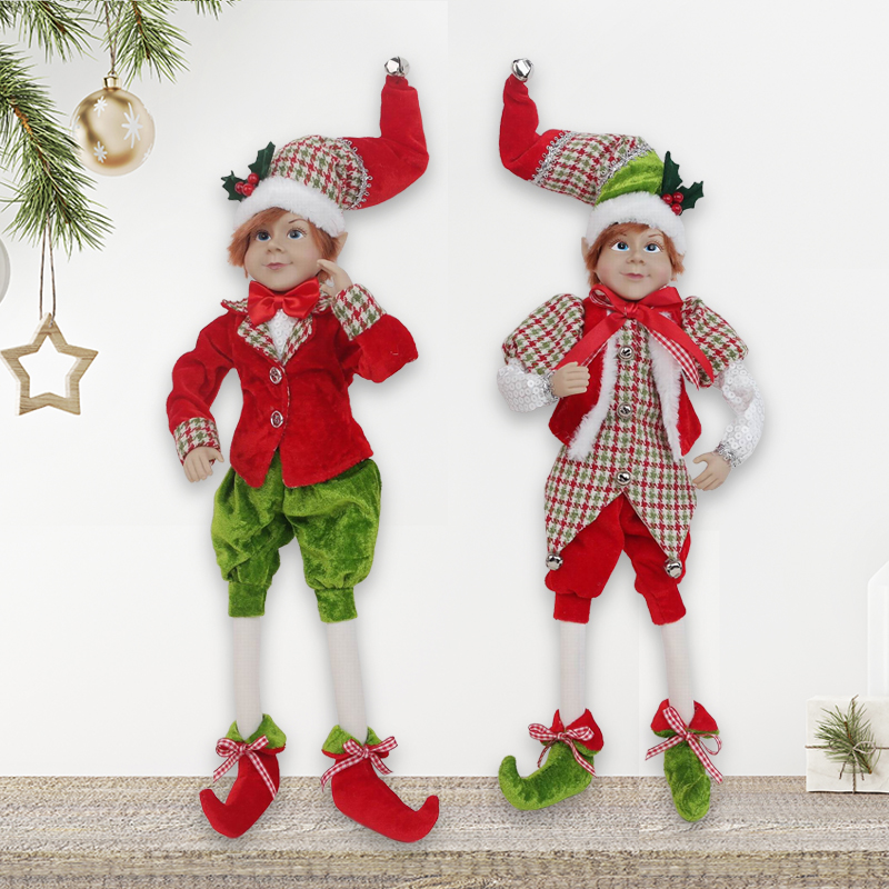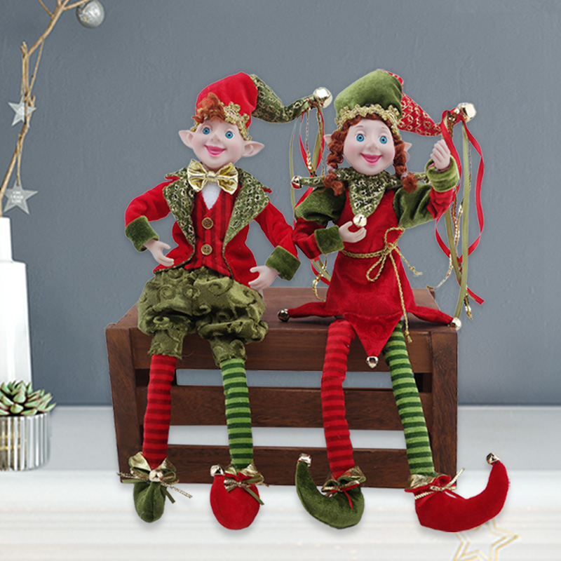 Description:Christmas Elf Doll Figurines Bendable Ornament Vintage Wreath Attachment Winter Sitting Plush Wreath Supply