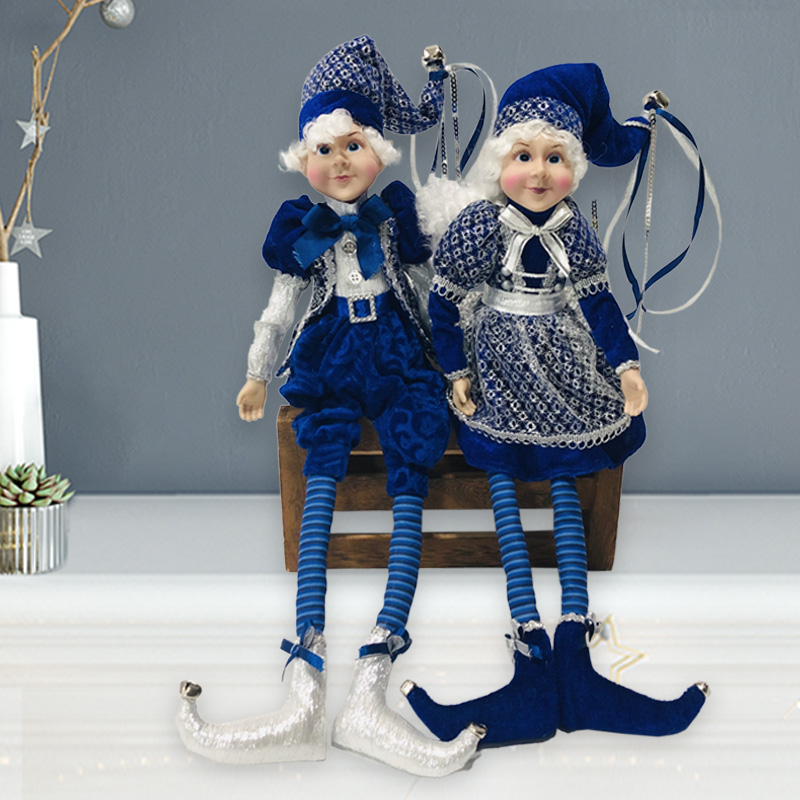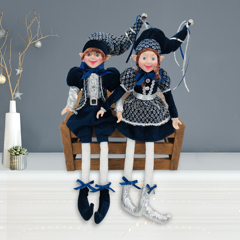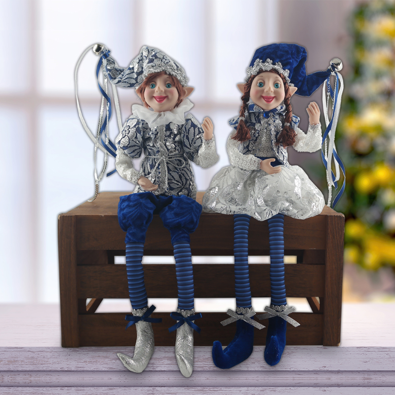 18inch Dark blue white Christmas Elf Sitting