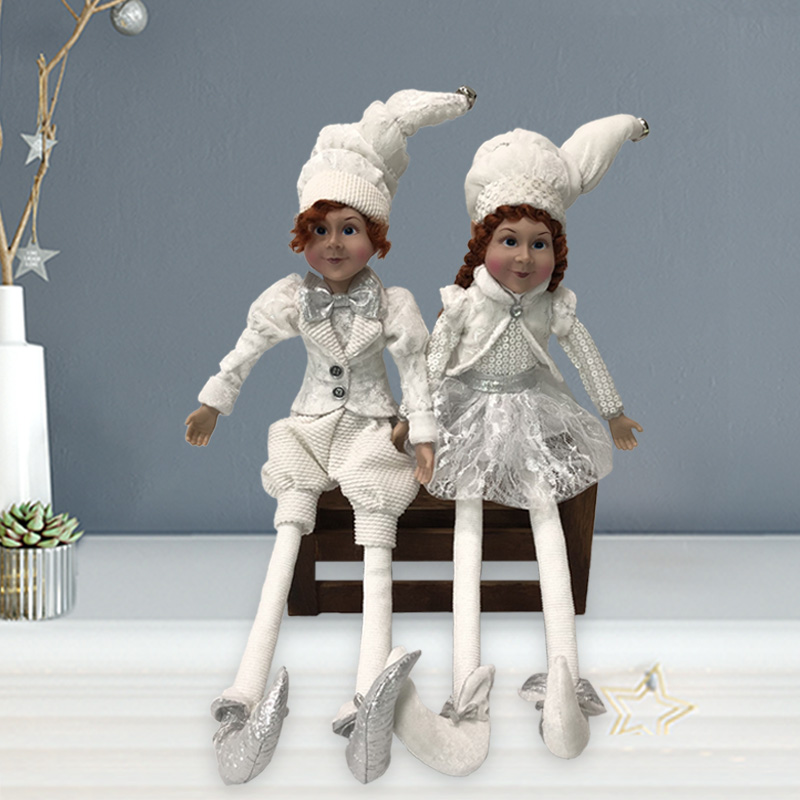 22inch Christmas Sliver White big head elf Sitting