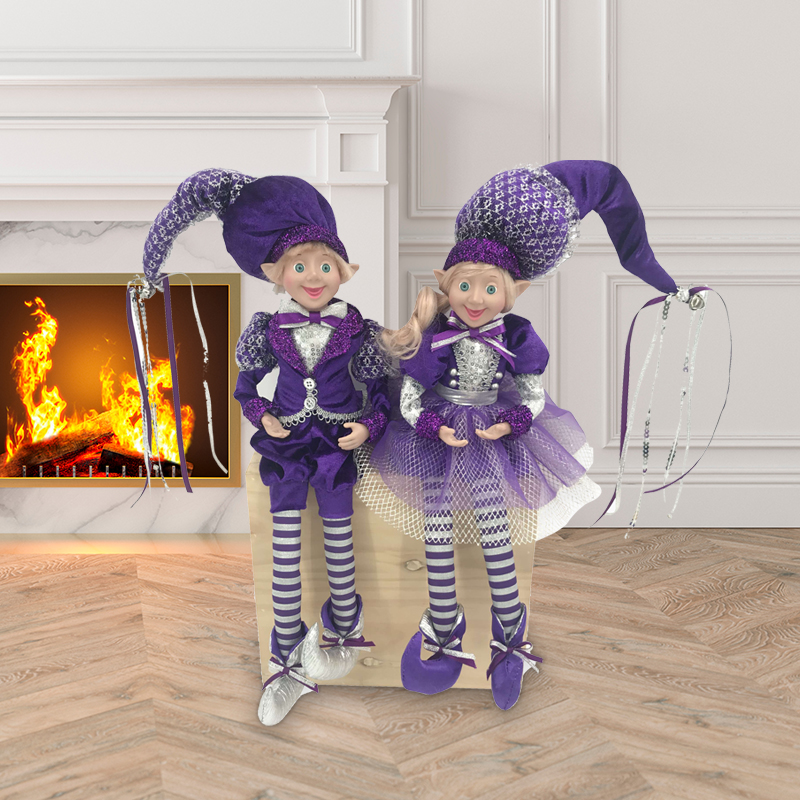 18inch Christmas Purple and silver elf Sitting