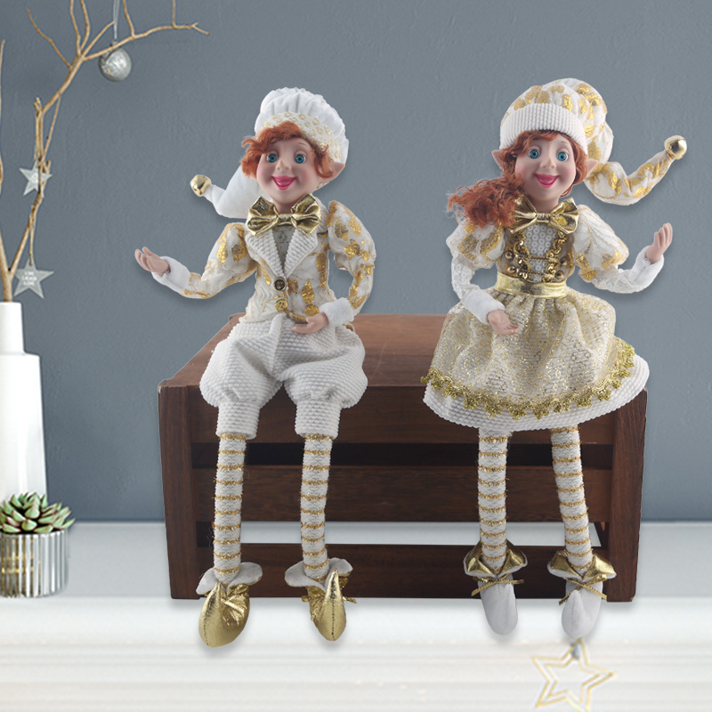 Description:18inch Christmas White Gold Elf Sitting Lace Fabric Aristocratic style