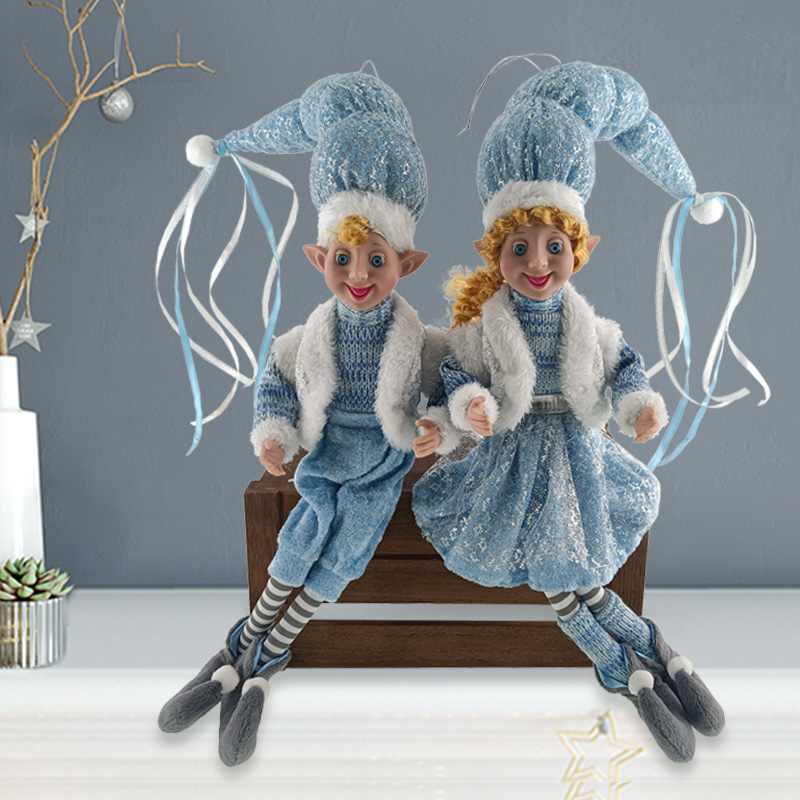 Description:18inch Christmas Bendable Plush Elf Doll Velvet knitted Fabric Ribbon Christmas Decor