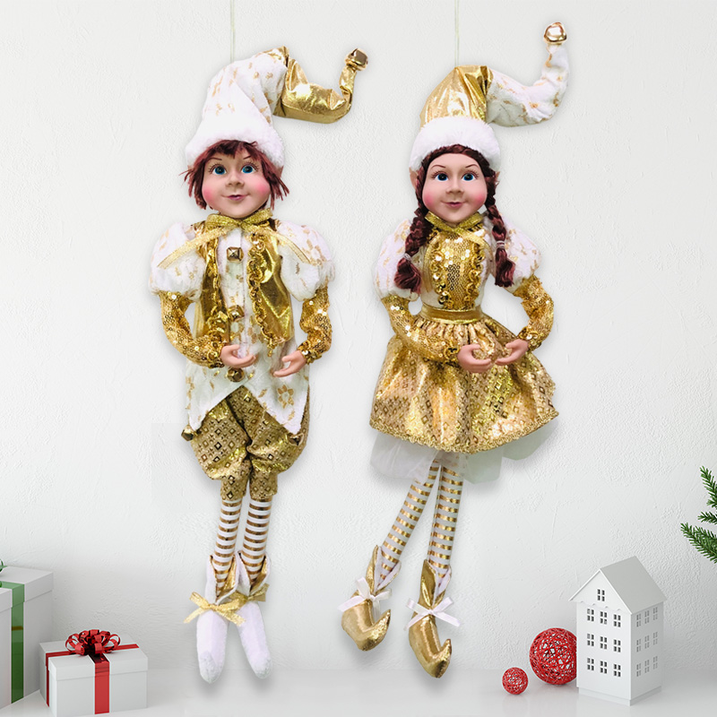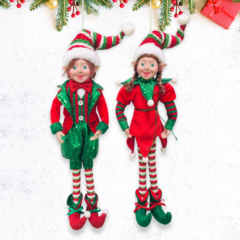 Description:Sparkling Sequins Elf Christmas Ornament Glittering Cheerful Playful Doll Girl and Boy couple Ornament