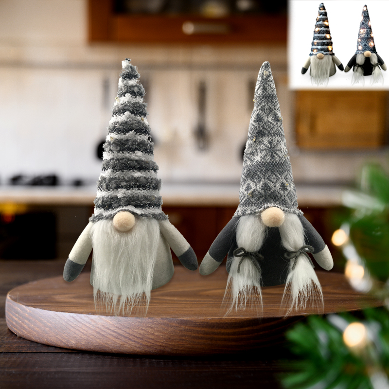 Description:Knitted Fabric Decorative Christmas Figurines Standing Xmas Figures with Lights