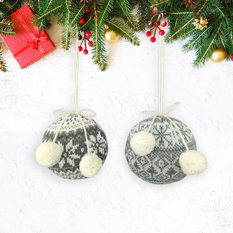 Description:Unique Custom Vintage Xmas Family Homemade Garland Small Knitted Mini Hanging Decoration Outdoor White Gray Sets Ball Christmas Tree Ornaments