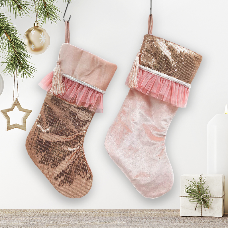 Description:Pink Christmas Figurine Indoor Ornaments Decor Rose Gold Stockings Decorations Supplies Birds Figures Balls Ornament Gift