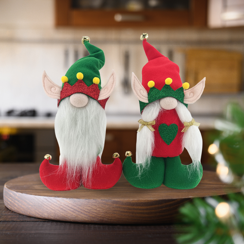 22inch Christmas Red Green Gnome Sitter 2 Asst