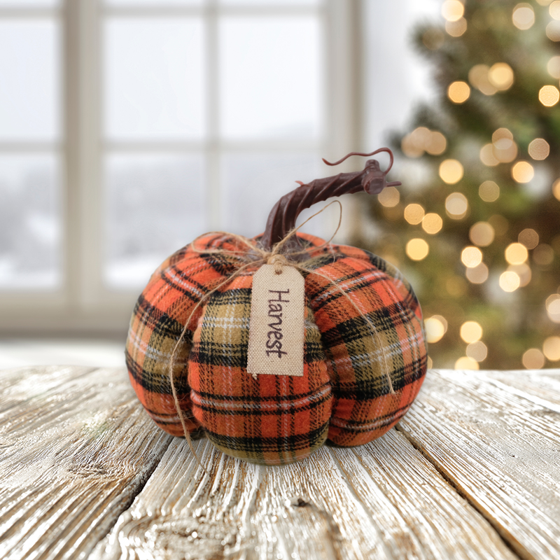 8''x4.5''Harvest Plaid Pumpkin