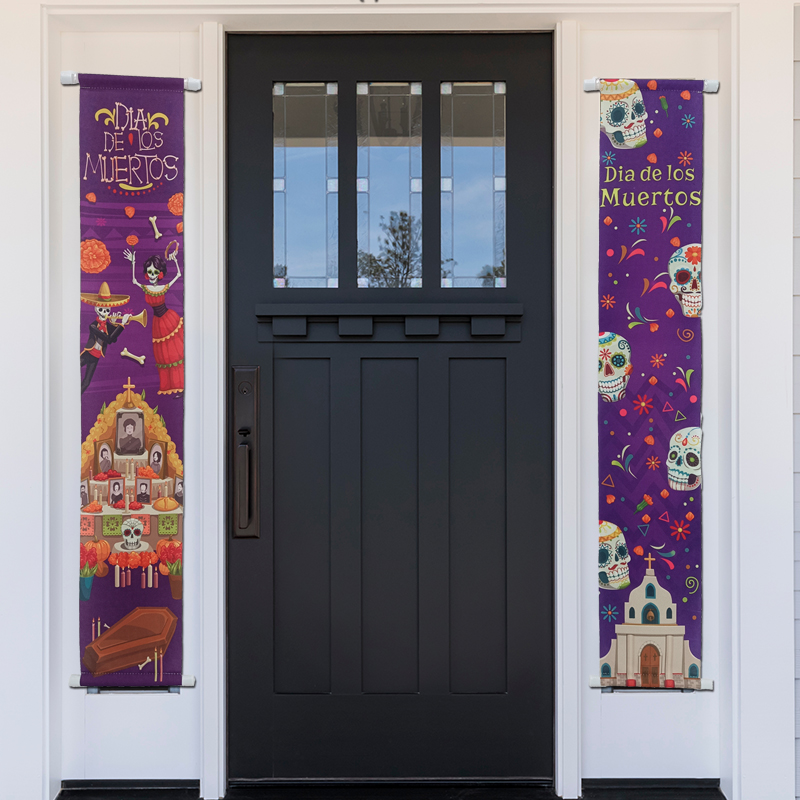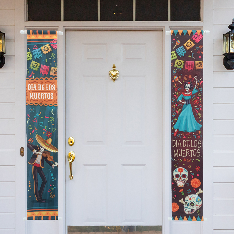 Description:Traditional Porch Sign Door Banner Day Of The Dead Skull Wall Art Style Decorations Festival Halloween Dia De Los Muertos Celebration Mexican Holiday Amazon