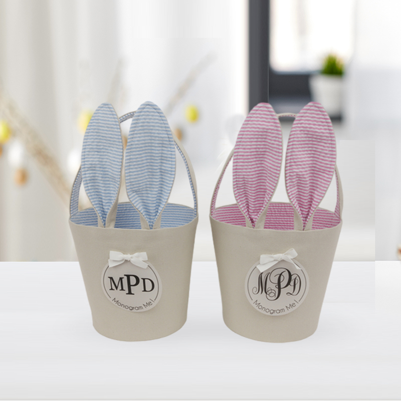 Description:Wholesale Easter Basket Bunny Bucket Felt Kids Gift Bags Decorations Sublimation Seersucker