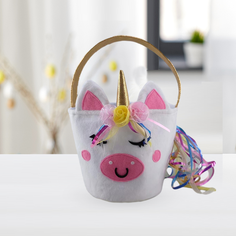 Description:Lovely Plush Easter Unicorn Gift Bag With Handle Easter Basket For Kids Easter Decoration