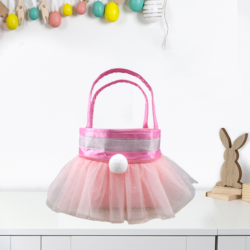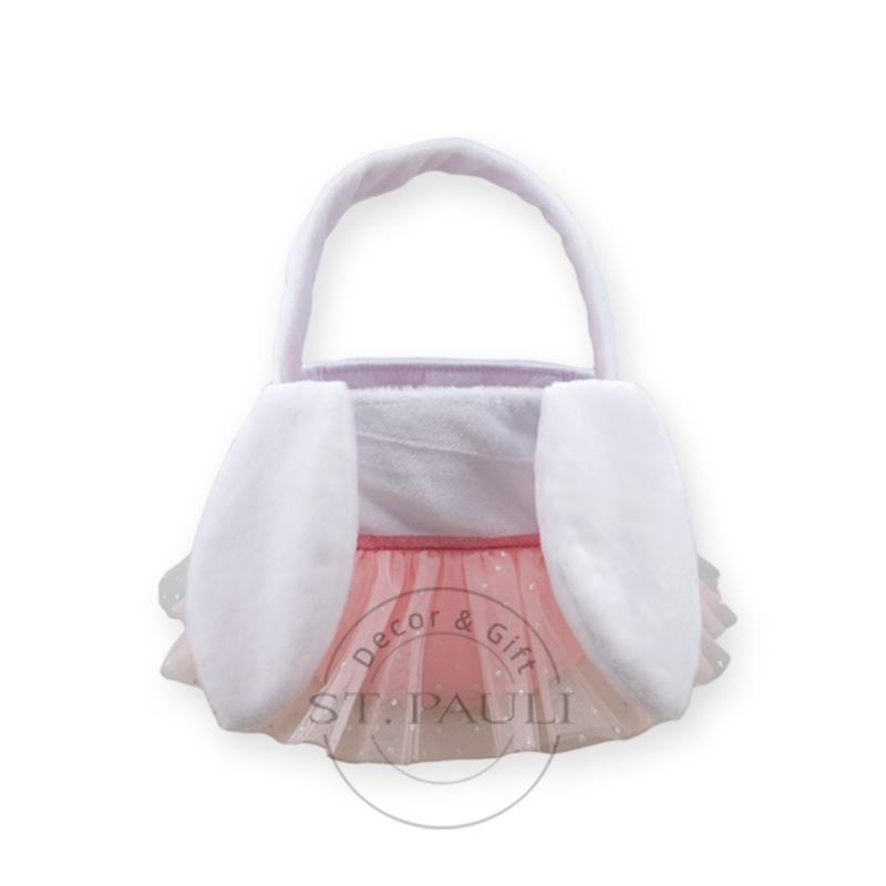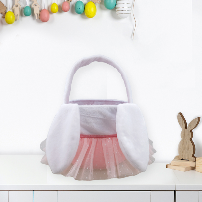 Description:Adorable Pink Tulle Basket with Plush Bunny Ears for Egg Hunts and Gifts