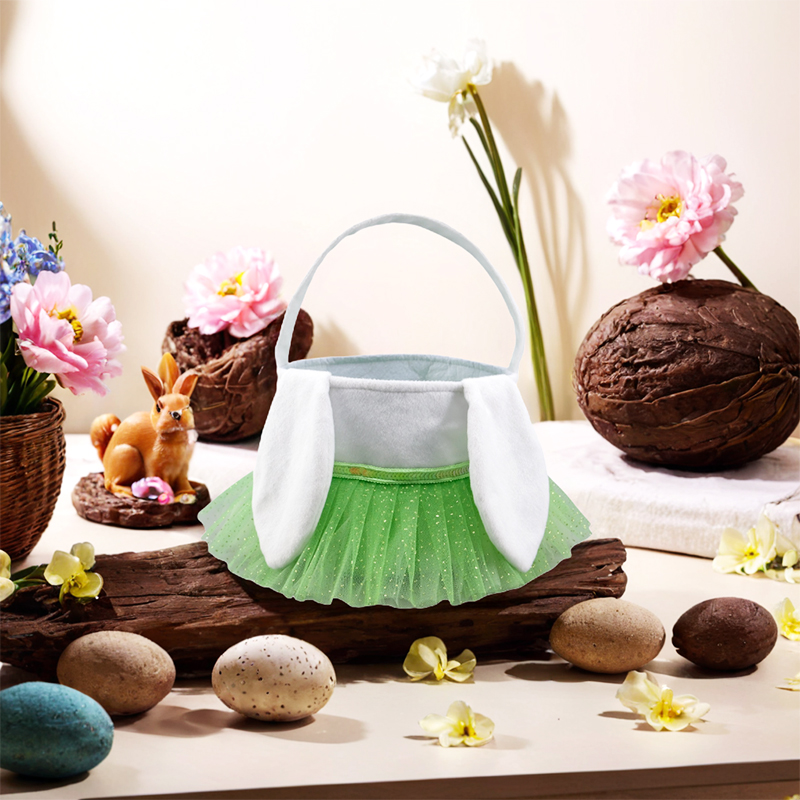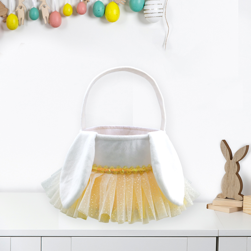 8x7''Whimsical Bunny Ears Easter Basket with Tulle Skirt